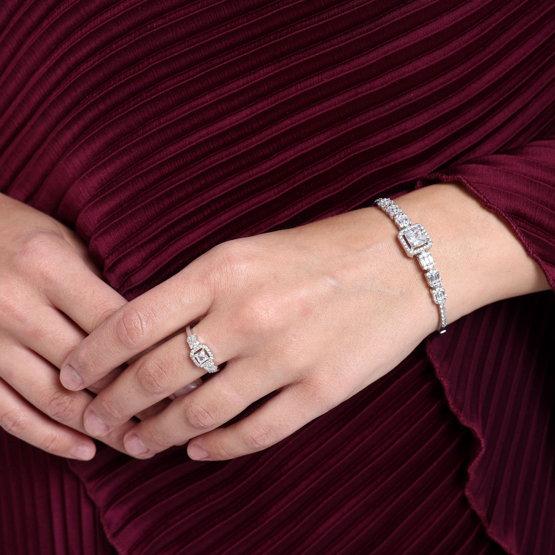 طقم فاخر يتكون من خاتم وسوار بتصميم مستوحى من اللمعان الخاطف للكريستال.