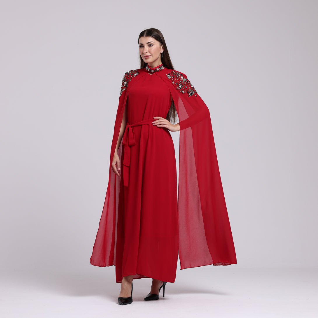 القماش: قماش شيفون خفيف وناعم يوفر راحة طوال اليوم مع حركة سلسة تمنحك إطلالة أنيقة. القماش الشفاف يضيف لمسة من الرقي، مما يجعله خياراً مثالياً للمناسبات الفاخرة.